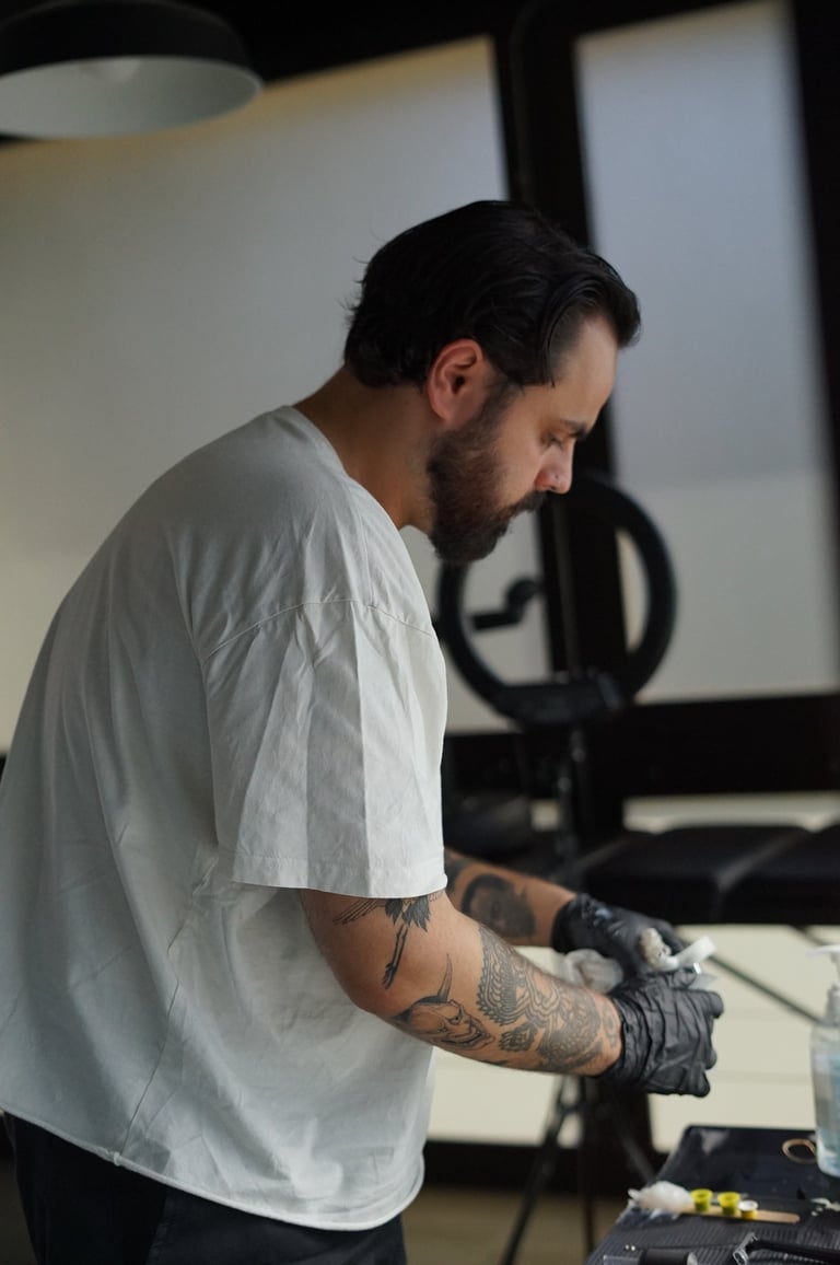 At 21x29.7 studio, we pride ourselves on using the highest quality materials and maintaining strict hygiene standards. Your safety and satisfaction are our top priorities. Every tattooist on our team is certified and has extensive experience in the art of tattooing.